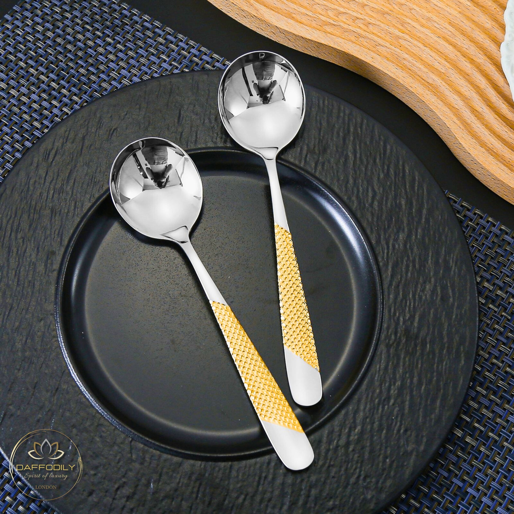 Elevate your dining experience with our Luxury Signature Soup Spoons, designed to perfectly complement your signature cutlery set. This set of 6 spoons is crafted from premium 304 stainless steel, ensuring exceptional durability, a luxurious silver / gold finish, and resistance to rust and corrosion.